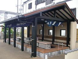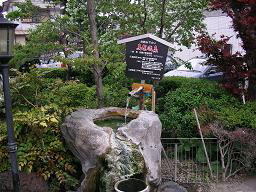 すぐとなりの駐車場に足湯があり、銀行の前には飲泉場があった。