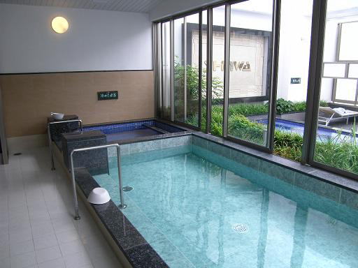 湯は無色透明で循環。やや塩素臭がある。