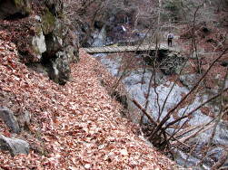 下りは、枯葉の吹きだまりを注意深く進み(一歩踏み外すと谷底に一気〜なーんて)1時間。