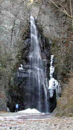 日原に向かう道の途中の登山口からはキレイに管理された杉の林道をずっと登り、それからそれて渓谷沿いにずっと細く道が続く。面白い岩や滝が多く、新緑や紅葉の頃は良さそうだ。ハイカーも少なく、のんびり登れた。百尋の滝は、中でも一番落差があり、水の量はそこそこだったけど迫力だった。脇のちょろちょろ落ちる水は凍っていた。