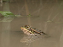 東京ダルマガエルが道のそばにたくさんいた。カエルって賢そうな顔をしている。(写真:東京ダルマガエル)