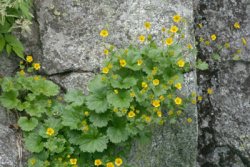 4時30分が最終というけれど、混雑を避けて早めに下りる。途中、大観峰の展望台で垂直の岩にへばりついているタカネバラやミヤマダイコンソウ(写真)がきれいだった。