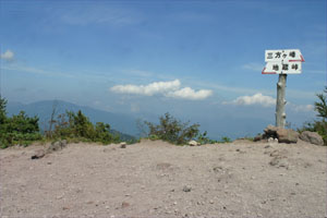 東篭の塔山山頂 (写真:頂上から浅間山を臨む) 下りる途中、ミソサザイが地鳴きしながら天然カラマツの下枝を渡るのが見られた、ラッキー! 下りて池の平を散策する。 |
