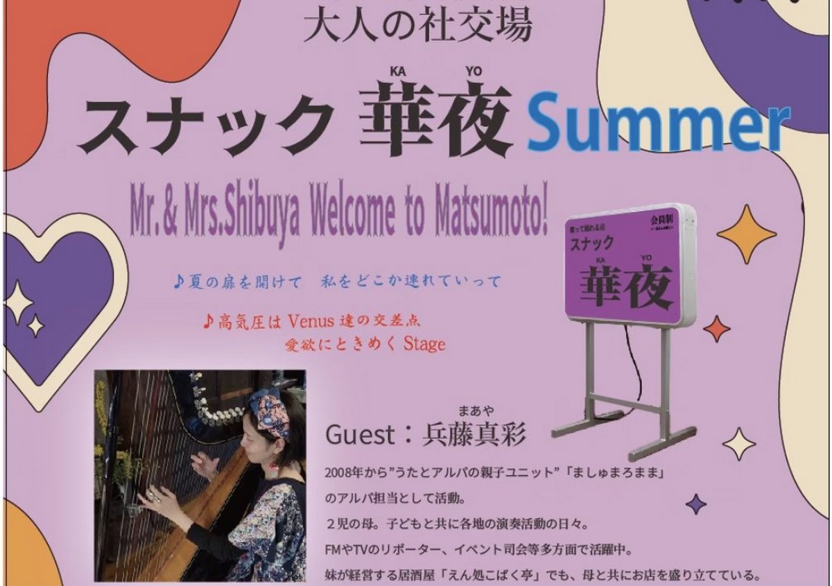 8/8、松本 SWEET WORKのイベント「大人の社交場 スナック華夜 Summer」