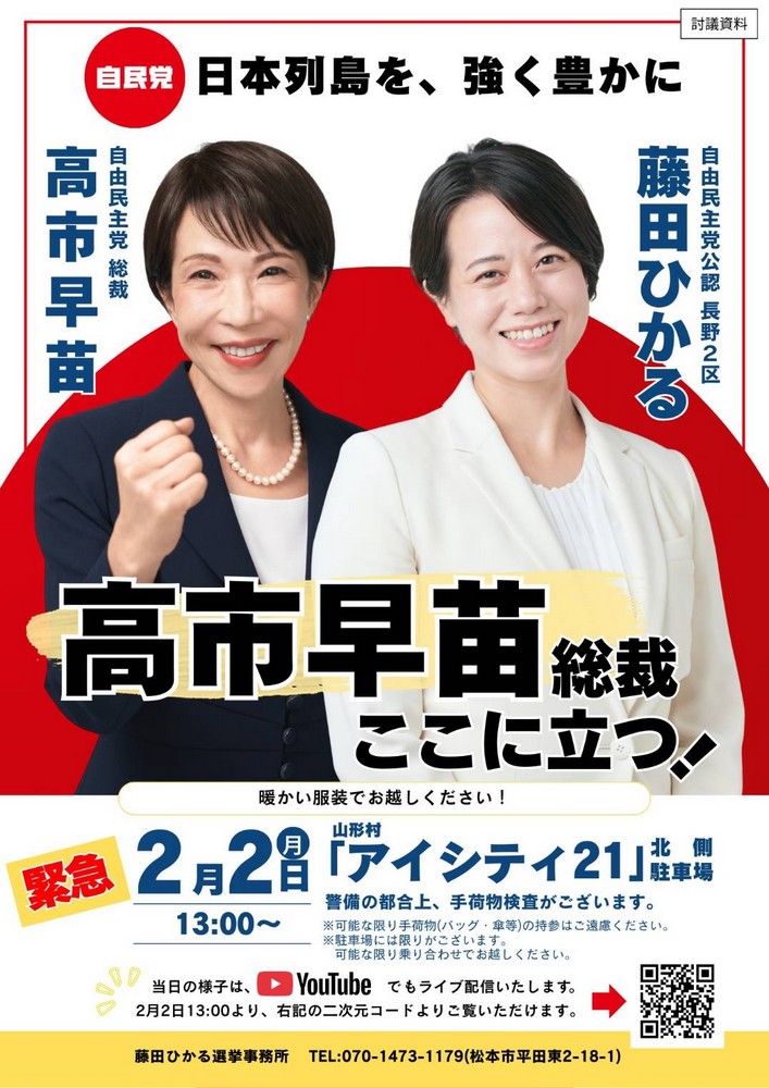 立候補している藤田ひかるさんと高市首相の演説会を観に行ってきました。