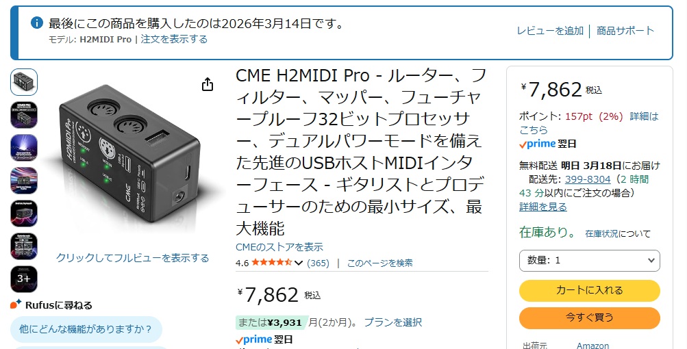 の中にはMIDIからUSB経由で信号をルーティングするアダプタが¥8,000円くらい