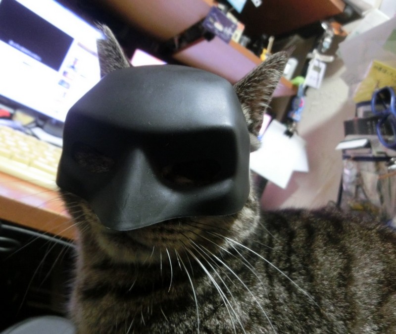 猫用のバットマンキャップを被って欲しいんですが、嫌がって直ぐに脱ぎます。