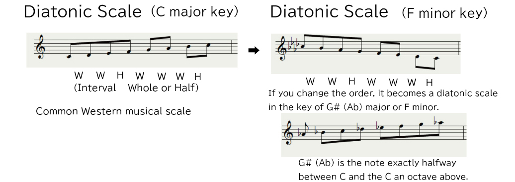 Each note in the scale (A, B, C, E, E, F, G and sharp and flat