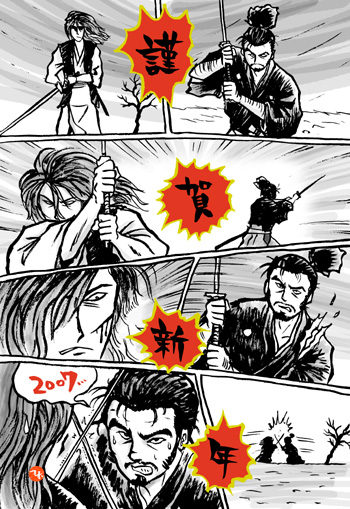 マンガ形式で年賀状。