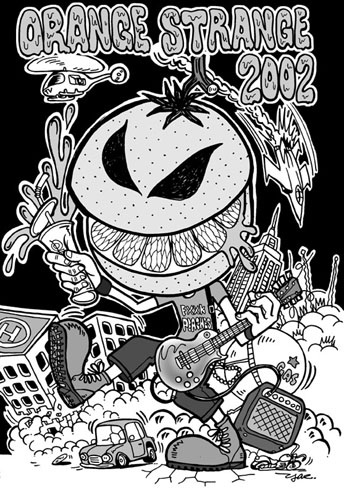 本のイラストの仕事で担当だった編集の方に頼まれて、イベントのフライヤー用のイラストを描いたもの。タイトルに合わせてオレンジの怪物が街を闊歩する、というようなテーマ(?)で。