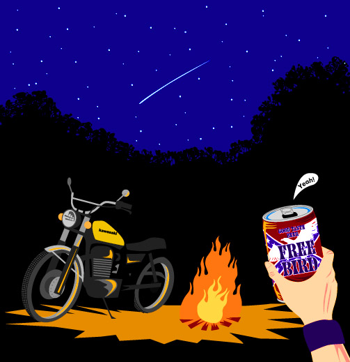 焚火の光と星空。