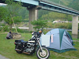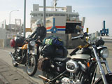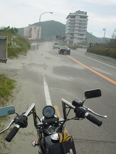 あまりの強風ゆえに海面が波立ちすぎて渦潮が見えない!こんなことってあるんだな〜。いやしかしマジですごい風で、橋や海岸沿いは当然、街中でもこわいくらい。鳴門に向かう海岸の道では砂浜の砂が風で道路に流れ込んでいた!上の一番右の写真をクリック!これがまた危険!この先にはさらにひどく砂だらけのところもあって、海側の車線がほとんど砂に覆われた部分が20mあまりも。 四輪の自動車ならまだしも、タイヤが二つしかなくしかもオンロードタイヤのスポーツスターにとってこれは危険極まりなかった。砂が薄いところを走ったつもりでも、ハンドルがグラグラして、マジでこけそうになった。あと1mももたなかったんじゃないか。アスファルトが現れてグリップ回復。いつぞやの北海道での転倒が脳裏をよぎった…ふぅ。 まぁそんなこんなで四国の旅は終了。あとは徳島〜和歌山の南海フェリーで紀伊半島に渡り、紀伊半島を横断して鳥羽〜伊良湖も船で渡り、東海道で東京まで帰るという道のり。短い距離のフェリーはワープ感覚で使えるのでけっこう便利。ちょっと寝たりできて休憩にもなるし。オススメです。しかし驚いたのは鳥羽〜伊良湖の伊勢湾フェリー。観光バスがいると思ったら、ツアー客の中高年がドバーッと船内に。オバチャンたちの落ち着きのないことと言ったらもう。55分の航海中、ガヤガヤウロウロ。旅行にきてまで船のテレビでやってる体操に合わせて体動かすな! 道中天気はよく、全体で雨に降られたのは1回だけ、しかもカッパを着ずにすませた。最近ついてるなぁ。トータルで1300kmちょい、1週間のバイク旅は大成功って感じですな。走って食って飲んで寝る、シンプルな毎日。次は夏の北海道…だな! |