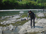 平日とは言え、四万十川のキャンプ場にはカヌーの人が3人とライダー2人がいた。やはり人気の場所なんだろう。川が近いので朝はさすがに冷えたらしく、フライシートには夜露が。そして四万十川をさらに遡りつつ進む。西土佐村辺りからは観光バスのためか国道が広くなり快走。日程のこともあるのでどんどん進むことにして、R56〜R32と走りつなぐ。さらば太平洋。あっカツオのタタキを食べ忘れた!まあ仕方ない。大歩危で食べた蕎麦は関東と違い、ツユが薄味でうまかった。麺はありえないほどふやけていたが。ってことで香川県に到達。 天気予報では翌日は雨風が強く嵐になるという。けど雨が午後かららしいのでキャンプした。が、イマイチなキャンプ場だったので詳細は割愛。他に一組いた客がギターを弾きつつフォークソング歌っていたのは面白かったけど。なつかしの歌のCD4枚組とかの通販番組のような選曲だったし。 今回の旅の目的に、本場さぬきのうどんを食う!というのもあった。本場のうどん屋は昼には行列で、だいたいどこも14時には閉まるらしい。なのでキャンプ場を出て9時過ぎにはうどん屋着。しかしすでにまぁまぁ人がいる。学生観光客?やこれから現場に向かう途中って感じのオジサンやら。ここの店は注文して出てきたものにセルフでダシなどをかけるタイプなので、さぬきうどん初心者にも分かりやすい。オレが頼んだのは釜玉うどん。一玉でじゅうぶん食える量。ウマイ!相方は冷やしのかけうどん。うどんを一回水に通した方がコシがあって、さらによさそうな感じだった。 うどんを食ったら天気が悪くならないうちに山を越えて徳島へ。徳島に着いたら降ってきた。風も出てきた。避難したガストで時間をつぶしたら雨がやんできたので、強風の中、鳴門海峡へ。だが… |