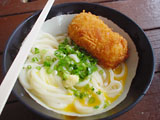 ![]() ▲釜玉うどん+カニクリコロッケ。 |