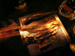 最初の火起こしはちょっと手間取って、炭が赤々と燃えるまでちょっと時間がかかってしまった。けど炭火で焼く鵡川のししゃもは絶品!干物と言っても、冷凍されていたもので生っぽい感じ。卵がないオスのししゃもなので脂がのっていて素晴らしかった。 このコンパクトストーブVHS、組立も簡単だしかなり楽しめます。コンパクトが売りなだけに、炭がでかいと入れにくいのだけど。 |