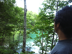 阿寒湖につく前に、オンネトーに寄り道。ここの神秘的な色はほんと不思議。道が狭いのに観光バスが走ってたりするのが難点だけど… 阿寒湖畔キャンプ場には、3時過ぎに着いてしまった。それでもテント設営して風呂に行ったりして食料を買いだして戻ると、案外いい感じで暗くなってくるもの。のんびりキャンプもいいもんだ。 ここでは風呂はいつも「まりも湯」に行ってたんだけど、今回はキャンプ場の受付でもう少し近いとこのホテルも案内されたので、そっちに行ってみた。ふつうの大浴場だったけど、まぁ快適。 |