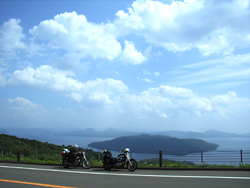 北海道のツーリングなら道東だと、去年道北で思ったので今回はこっちに時間をかけることに。阿寒湖畔キャンプ場を出発し、まずは摩周湖へ。本日はピーカン。ここの水の蒼さはいつ見てもすごい。 売店内で摩周湖ができた経緯をCGつきで放映していたけど、昔ここに富士山のような形をした火山があって、それが大噴火してでかい穴があき、湖ができたとか…。自然ってすごいね。阿蘇もスケールのでかい噴火のあとだもんな。 観光地ではだいたいソフトクリームをチェックするのだけど、ここの「マシューブルーソフト」はブルーハワイ的な怪しさがあったのでパス。 |