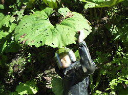 美幌峠から北に向かったものの、実は予定では今日の目的地は釧路。宿に入って洗濯などしようという魂胆。なので今度は南に向かって国道をひた走る。朝出発した阿寒湖の脇をまた走ったりして。同じ道を二度走った…。 国道240号、通称「まりも国道」はけっこう退屈。巨大なラワンブキを見つけて、写真撮ってみたりした。 目的地の釧路には日のあるうちに到着。まずは和商市場へ行き、自分ちに送る用のイクラやお菓子なんかを注文。翌朝の朝食を勝手丼にするため、釧路駅南側で宿を探した。 |