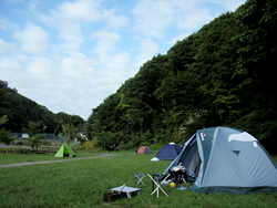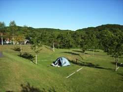 夜が明けたキャンプ場はこんな感じ。 けっこう広くて、受付からここまでの間にオートサイトとバンガローがあり、フリーサイトはここと、この奥にも。トイレや水場も新品のようにきれいだった。混んでるのはいやだけど、誰もいないのも微妙だったな。 しかし日射しがえらく強くて、撤収するだけで猛烈に汗かいた。もう少し木陰があればねぇ。 |