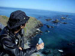 ま、そんなこんなで襟裳岬に着いた。道道34号に入ってからは、かなり気持ちいい道だった。景色もよかったし。 岬は快晴で、いい眺め。崖の下で干していた昆布を背負って登ってくる人が見えたりして、観光地ながら生活感も感じてしまった。 ここで食った「こんぶソフト」の凄さはこちらを。 そろそろ本日のキャンプ地を決めなくてはならない。この近くの百人浜キャンプ場もいいかなと思ったけど、まだ3時前だったしさらに進むことに。 |