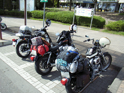 ![]() ▲荷物を積んだ3台。旅の始まりです。 |