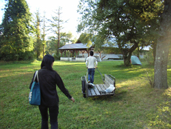 初日は東京からグワーッと東北道をひた走り、猪苗代のスーパーで買い出しをすませて、キャンプ場へ。それでも夕方になってしまった。 キャンプ場は休暇村裏磐梯のキャンプ場。この季節にしてはあんがい人がいたけど、サイトが林間や草原などいろいろあって離れてキャンプすることができてよかった。バイクは駐車場に置くんだけど、リヤカーがあるので荷物の運搬は楽。 ここはおれが学生時代に初めてキャンプツーリングに来てキャンプした場所でもある。初心者にはちょうどいい感じなのではないかな。 |