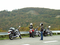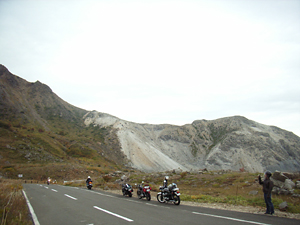 その後、磐梯吾妻レークラインから磐梯吾妻スカイラインと有料道路を走る。スカイラインは標高1500mになることもあって、寒かった!一番高い浄土平のあたりでは、けっこう紅葉していた。料金所のオッサンは「今日はバイクには最高だね!」とか言ってたけど、寒すぎだった…。 昼過ぎにスカイラインを降りて、福島西インターへ。ここでヒラオカ君とはお別れ。この日は彼が東京を去り、故郷の仙台へ帰る日でもあったのだ。東北をいろいろ走りたいとのこと、これから寒くなるけどキャンプツーリングを楽しんでほしいね。そして愛車でツーリングを長く楽しんでほしいものです。 |