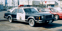 駐車場内にあったパトカー。ブルースモービルみたいと思って。