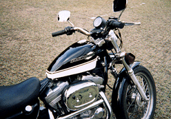 ![]() ![]() スモールなタンクの図▲ カッコえー!やっぱ883は小さいタンクでしょ。シ−トとタンクの間に見えるフレームがたまらん!60年代の形のエンブレムもイカス!中古品とは言え、いい買い物をしたもんだ。(1999.9) |
