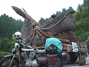28日夕刻、フェリーは川崎を出た。船内で読もうと思って会社の昼休みに買った文庫本を会社に忘れてきたので、寝たり起きたりしながら超ヒマに過ごしているうちに船は29日18時頃宮崎港に着岸。予報通り雨。船の中から電話して1000円の四畳半・板の間バンガローを押さえた、60kmあまり離れた西米良のキャンプ場へ急ぐ。旅の始まりにいきなり雨は滅入るが、考えてみれば去年も初日は雨だった。すでに寝る場所が決まってるだけ気楽。北海道でのフェリーが着いた23時から100km走るとか、そんなことを考えたら、このぐらいアリって気もする。夜で雨の真っ暗な山道はちとハードだったけど…