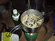 キャンプ場はきれいなもんで、寝るのに不足はない。しかしひたすら走ってメシを何も買ってこなかったので(途中から完全に山道で店もなかった)、非常用にと思って持ってきた登山用品店で買った煮るとリゾットになるヤツを食った(写真)。非常用のつもりがいきなり役に立つとは…先が思いやられる気がする。船の中の予報では明日は『雨のち晴れ』だと言うので、希望を抱いて寝る。