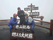 5人と別れ、そのまま北へ山を降りる。お次は大観峰だ。多分また何も見えないだろうけど、とにかく行かなくちゃ気が済まないんだよ!R212で外輪山に登ってミルクロードに出る。案の定またしても雲の中。本当なら「阿蘇山が釈迦の寝姿に見える」って場所なんだけど…本当に真っ白け!しかも展望台には人っこ1人いなくなってしまった。しょうがないんでセルフタイマーで写真を。学生時代に来た時の方がクソ寒かったけどまだマシに見えていたなあ〜〜トホホ。ここの売店で阿蘇豚(だっけ?)の骨付きウィンナーを食う。売り子のおばちゃんと話したら、28日からずっとこんな天気だとか。かきいれ時に商売上がったりだね、かわいそう。