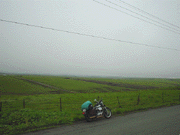 見えないけどくやしいからミルクロード周辺を走り回る。ミルクロードの標高がちょうど雲の高さみたいで、ところどころ雲の下になる場所もあったので、写真も少しずつ撮った。(左はミルクロードあたり。周りは牧草地。★) ぽいさんと合流するであろう夕方までには、本日のねぐらをどうするか、決めておかねばならぬ。せっかく遠方で合流して二人でウロウロ彷徨うのもなんだしねぇ。ましてオレは1日ここらにいるわけだし。