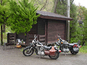 ダラダラ準備していたらチェックアウト時間の11時を過ぎてしまった。まあオレは今日は大分の友達のところまで行くだけなんで、全然OK。ぽいさんは宮崎のえびのまで行くか熊本辺りで泊まるか思案中。オレの持っていた九州のキャンプ場ガイドを貸した。このへんで露呈したのが、夕べの会話の中でかなりオレの記憶にないものがあるらしい、ってこと…ひえ〜〜〜やべ!!そうとうイイ気分で酔っ払っていたらしい…楽しかったことは憶えていても内容が記憶にないって、時々やるんだよね〜もったいない&すいません! 瀬ノ本のドライブインまで一緒に走って、ぽいさんとはバイバイ。やまなみハイウェイをオレは北へ、ぽいさんは南へ。それぞれが来た方向へと交差して走っていくのだ。なんだか「旅」って感じ!?交差点で手を挙げて、それぞれの方向へ。よし、まずはやまなみハイウェイだ!