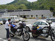 このGWのツーリングはどうやら恒例行事になりそうである。しんじさんと龍田さんは既婚者で子供もいるぐらいなので、そうそうバイクで遠くまで出かけるってことができない。出てくる朝は米子はドシャ降りだったらしく、龍田さんは奥さんに『中止じゃないの?』って聞かれて、『東京から八重樫くんが来るんだから行かなくちゃいけない』って言って出てきたって。ん〜ちょっと(いやカナリ)オレって悪役??まーそこまで言って出てきてくれるのはうれしいコトです。こうやって毎年楽しんでもらうために二人を引っぱり出すのがオレの役目なら、あえて悪名かぶりましょう!?