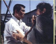 泥濘から 森崎、掛札、中島、梶浦 (シナリオ 1973年10月号) 黒沢監督の「野良犬」は昭和二十四年の作品、正に当時の社会が生み出した時代の産物であり、日本映画史上に永く残るべき名作である。 それから四分の半世紀を過ぎた今、「野良犬」を再映画化することは正直言って気が重い。 折角の名作を泥土に投げ打つことは堪えがたい。 只、私たちを支えたのは、かつての時代が「野良犬」を産んだ如く、吾らの時代もまた「野良犬」を産める筈だという想いだけである。 このシナリオの不完全さも時代の刻印と言いくるめる気はない。だが、私たちは混乱にひきずられることでしか作品を創れない。そのことは正に時代の刻印であると、私たちは想うのです。 『野良犬』作品紹介 (佐藤忠男) 『世界映画作品・記録全集』(キネマ旬報一九七五年659号) 四九年に新東宝で作られた黒澤明監督の『野良犬』の再映画化である。前作の黒澤明、菊島隆三のオリジナル・シナリオを森崎東と一色爆が再脚色、森崎東が監督した。若い刑事がスリに拳銃を盗まれ、その拳銃の行方をベテラン刑事と一緒に追跡するが、盗まれた拳銃は転々と人手に渡り、殺人事件に使われて次々と被害者が出る。二人の刑事は懸命に捜査を続けるが、ついにはベテラン刑事も撃たれる。責任感で燃え上がった若い刑事は最後に犯人を逮捕する。原作では犯人は復員兵であり、戦後の社会に絶望して犯罪に走り、それを追う若い刑事も復員兵であって、犯人の気持がわからないでもないという微妙な心理があるということになっていた。そこに戦後の荒廃した世相風俗やいかにも戦後的な人間像が縦横に描き込まれて、戦後という一時期の記念碑的な風俗絵巻になっていた。 森崎東の新作は、これを現代の京浜地方を舞台にして描き直している。若い刑事は渡哲也、ベテラン刑事は芦田伸介である。そして犯人は沖縄から集団就職でやって来た数人の若者たちである。彼らは大都会での最低の下積み生活の中で怨念をつのらせ、仲間の一人が手にした拳銃で犯罪に走ると、一人だけを犯罪者にしない、俺たちはみんな一緒だと、仲間で次々に自分の憎む者に弾丸をぶち込もうとする。志垣太郎を始めとする少年たちの悲痛な思いが最後に表面に出てくるのだが、この犯罪動機の設定が必ずしもマトを射たものになっておらず、森崎東の熱っぽい演出にもかかわらず平凡な刑事ものに終わった。撮影・吉川憲一、音楽・佐藤勝。松坂慶子、千石規子共演。104分。 『野良犬』 略筋 野原藍 (『森崎東篇』より) (ピンク文字は池田博明が補足した) 村上は熱に浮かされたように炎天下の街を歩き回っていた。餌を求めてうろつく野良犬のように。そんなとき聞き覚えのある言葉を耳にした。沖縄語だ。犯人はもしや・・・・・。事件に関係があると思われる女工の朱美(中島真智子)を佐藤がつけていくと、もう一人忍び寄る黒い影が。村上だった。ひげはぼうぼう、頬はこけ、目だけを光らせて。荷揚げ倉庫の中で朱美は「誰も来ないよ」といい、やがて沖縄の歌を歌いだした。仲間に危機を知らせているのだ。なぜ殺すのか。「その目よ。そんな目でいつも見られてる人間の気持は、見ている人間にはわからないと思う」と朱美は言う。彼らは沖縄から集団就職の少年たちだった。佐藤が村上を残して出て行ったあと、朱美は自分を抱いて代わりに仲間を助けて欲しいと訴える。 次にやられたのはヤクザ、労務者泣かせの手配師だった。検問に少年たちの一人がわざとバイクで突っ込み、仲間たちを逃した。この連帯感の強さは・・・。川崎駅前で待ち合わせている四人の少年を張っていて佐藤は三発目の弾に撃たれる。一人だけ逮捕したが彼は吐かない。 一人で一発ずつ、誰かを撃っていく。村上に朱美が言った。「純は人を殺せるような子じゃない。一緒に行って下さい」。新宿の街角で出会う少年たち。村上は必死に彼らを追いかける。新宿の街頭で、ついに自分の 純の手から拳銃をもぎ取って少年たちは逃げた。純の葬式で村上は少年・謝花(山城春芳)を捕えたあと、佐藤の死を知らされる。調べ室で黙秘を続ける謝花、隣室の仲間・具志堅(上原守次)と壁を叩き、沖縄の歌を歌って励ましあう少年たち。 佐藤が好きだったカンナの花を、現場に供えようと一枝と出かけたとき、村上は骨壷を抱えた朱美を見かけ、後をつける。晴海ふ頭で出港直前の船にかけこむ朱美。骨壷を受け取った比嘉少年(志垣太郎)の手に拳銃があった。 「俺が撃ちたいのはお前なんかじゃない」と比嘉少年は言う。彼が撃とうとしていたのは、いったい、誰だ? 激しい格闘の末、比嘉に手錠をかける村上の腕は最後の弾で貫かれていた。ようやく取りもどした自分の拳銃を拾い上げる村上を朱美の無言の視線が射る。彼は血がしたたる腕を振り上げて拳銃を海に投げ捨てた。 藤田真男 SLOW TRAIN 日本映画遺産より 指定第29号 森崎東の御真影 一部を引用 明治天皇の「御真影」と 大阪庶民から