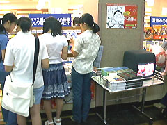 ![]() 会場横の書店で開催されていたジブリフェア 旧作のビデオ・フイルムコミック・関連書籍を販売 |