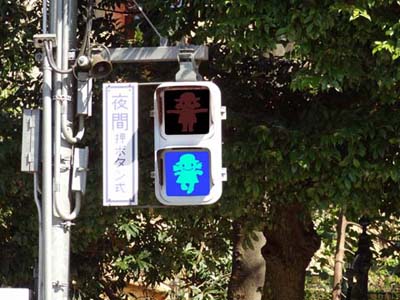 この「メイちゃん」の信号は、地方分権化の一環として国土交通省が検討していた「地方交通の特色化推進プログラム」に基づくもの。2006年から実施されている「ご当地ナンバー」は、このプログラムの第1期の成果として有名であるが、今回の「ご当地デザイン」は、その第2期にあたる。正式には、「ご当地信号デザイン特例」といい、歩行者用の信号機に限り、その地域ならではの特色を生かしたデザインへの変更を認めるという制度である。