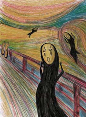 宮崎駿氏に影響を与えたアニメーション作品といえば、「白蛇伝」が有名である。漫画家を志望していた宮崎駿氏は、高校生の時「白蛇伝」を見て、コタツにうずくまって泣いたほどの衝撃を受けたという。しかし、宮崎氏が漫画家を志望することになったのは、小学生時代に見たムンクの影響である。すなわち、氏のルーツの中のルーツは、ムンクだったという訳だ。少年時代の宮崎駿氏がムンクに出会わなければ、「千尋」は生まれ得なかったと言える。いや、「千尋」どころか、ジブリそのものも生まれ得なかった。スタジオジブリの源流の中の源流は、ムンクなのであった。