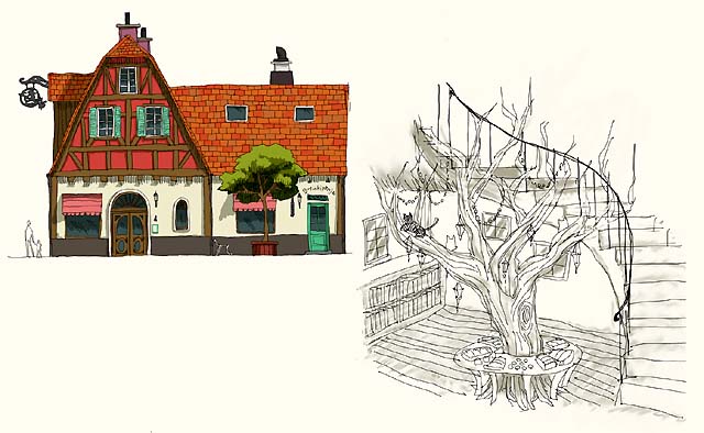 宮崎吾朗氏の直筆による、2号店のラフデザイン。