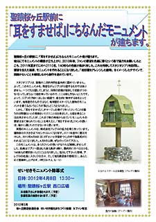 モニュメントは、2012年4月8日、「せいせき桜まつり」の開催中に完成、除幕式が行われる。多摩市長が挨拶するほか、あの月島雫の声の役を務めた本名陽子さんも駆け付けて下さるという。