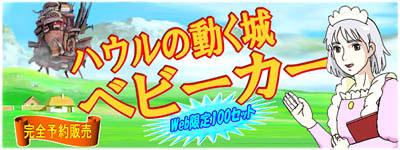 「ハウルの動く城」の公開10周年を記念して、ベビーカーメーカーの老舗・マッコー商事(株)とスタジオジブリがタイアップ、ハウルの特製ベビーカーを開発、販売を開始する。ハウルの城の意匠を活かしたデザインで、シンプルバージョンからフルコンプまで様々なアレンジが可能。新開発の特許技術もふんだんに盛り込まれており、赤ちゃんの情操教育にも大きな効果を発揮するという。100台の完全限定版で、4月1日より特設サイトにて予約を受け付ける。