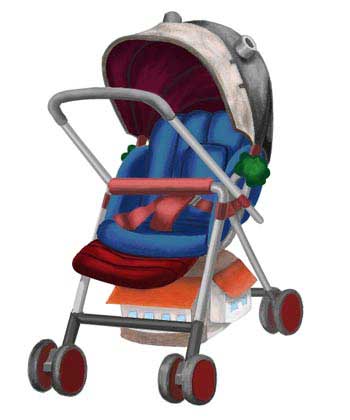 ハウルの動く城ベビーカーの基本セット。ハウルの城の意匠が凝らされている。