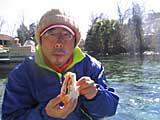 ポイントに着くなり着替えて気合を入 れます。日曜日なのに朝までの大雨で 思ったより人出が少なくラッキー。 |