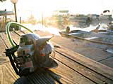 | 最終日もお天気バリバリでマナティー三昧。みんなおなかいっぱいマナティーと遊びました。 マナティー待ちで船の上でのんびりしていることも多いけれどフロリダの太陽でのんびり日向ぼっこもいいものです。 逢えればラッキー。そんな気持ちでのんびりとマナティーに逢いに来てください。 |