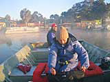 今日は最終日。朝からかなりの冷え込みで霜が降りた。水面にに湯気が立ち上る。