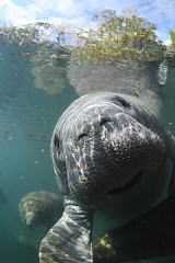 フロリダマナティーは体長3m。アメリカ・フロリダ半島沿いの浅い海や河に棲 んでいます。海水