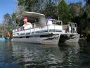 クリスタルリバーはタンパから車で約1時間のところにある小さな街です。1月2月は冬にあたります。フロリダの太陽は燦燦と輝いていますが朝は冷え込み、最低気温は0度くらいになることもあります。日中は20度を越えるほど暖かくなります。水温は22度。外気温に比べて暖かく感じます。朝8時から9時の間ぐらいにチャーターボートでマナティーのいる泉へと出発します。ポイントまでは約30分。着替え用のテントやお弁当、温かい飲み物を持って行きのんびり一日マナティーと遊びます。雨の日などは近くのマナティーグッズを売っているお土産屋さんやマナティーの保護施設のある動物園などへ行く予定です。