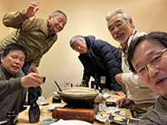 3年ぶりということで、メンバーは手に手に3年分の作品集を持参。Sさんの会いたい鳥に会うために若い人と行動を共にする行動力、K先生の丁寧なキジの子育て記録、Yさんの伝統工芸の域に達した芸術性高い作品、Mっちゃんの宝石箱のような、これぞ多様性という作品、ぐうの音も出ない作品群に圧倒され、いつものようにうなだれて帰ります。中田はいつもどおり鳥、獣、花、蟲総動員のオモチャ箱。皆さんが遠くへ、高くへと行ってしまうのを、同じ場所をグルグル周りながら見送っている感がありますが、これも自分で選んだ道。でも、そろそろまとめてドンと発表したいなあ、などなど酔った頭で色々考える夜でした。(2025/12/21)