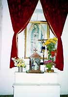 教会の前は石畳の広場になっていて、燃えるように赤い花をつけた樹が3〜4本植えてある。近所の人たちがこの広場を抜けて、朝のミサにやってくる。教会に入るときだけでなく、近づいてくる間にもしきりと十字を切っているのが、信仰の深さを感じさせた。